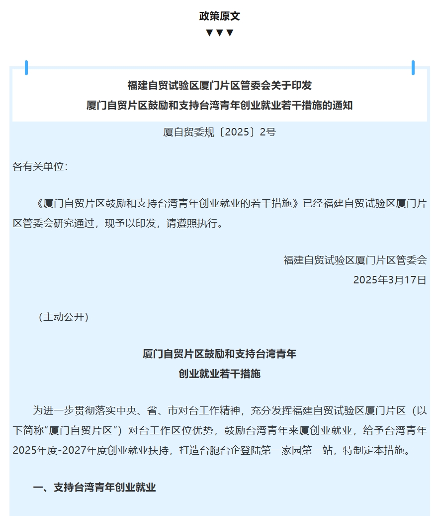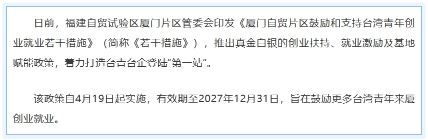支持臺青來廈創(chuàng)業(yè)就業(yè)!廈門自貿(mào)片區(qū)出臺措施